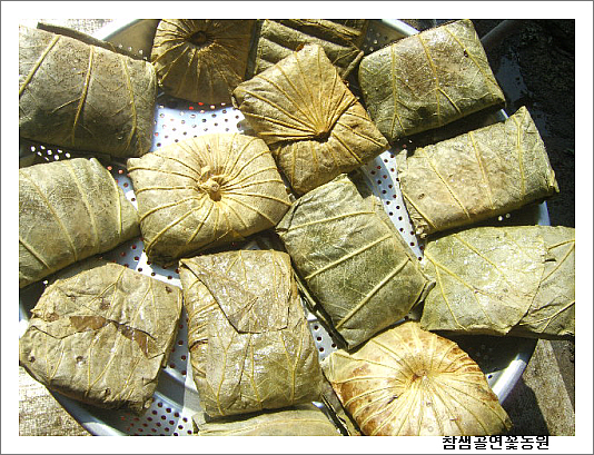 오시자마자 점심식사로 준비한 연잎밥을 다들 맛있게 드시더라구요..시장이 반찬입니다..